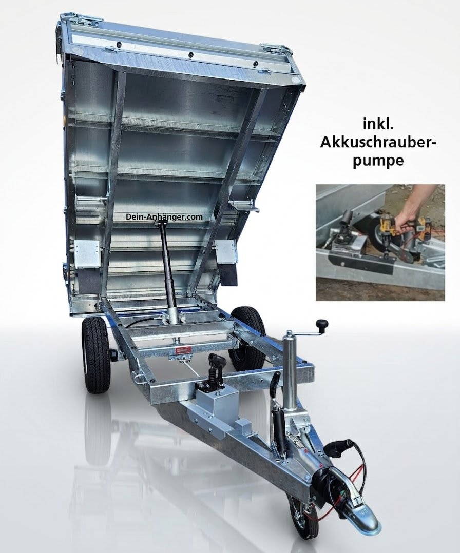 Kipper N13-256 1300 kg 256x148x30cm Handpumpe & Akkuschrauberpumpe Metallboden Pkw Anhänger Neptun