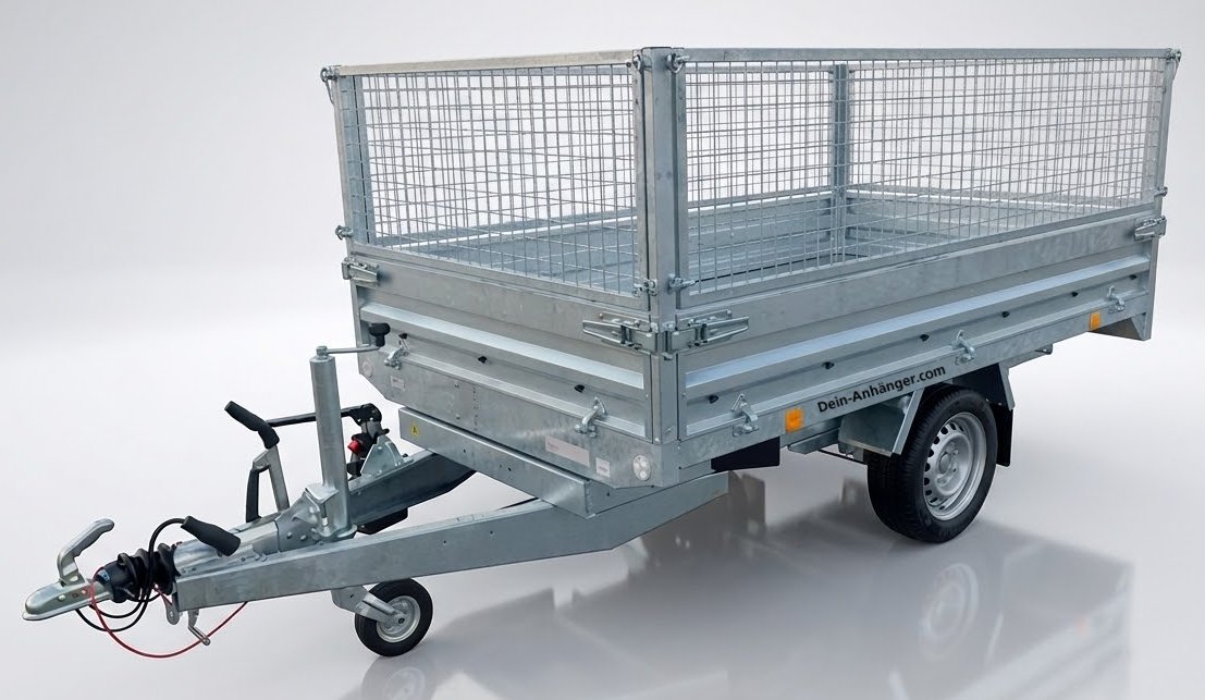 Vollverzinktes Chassis & Profi-Stahlboden: Langlebigkeit ist hier Standard. Der Rahmen ist feuerverzinkt und die Ladefläche mit einem robusten, verzinkten Stahlboden belegt – ideal für den harten Kontakt mit Schaufeln oder Werkzeugen.