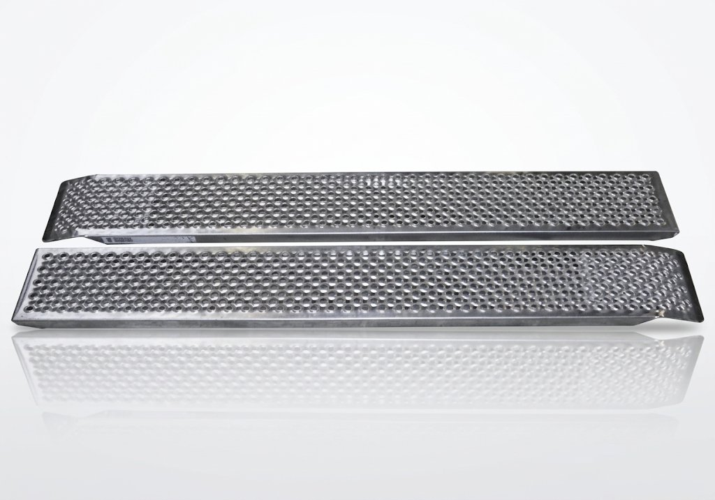 Auffahrschienen 260 x 2500 mm, Tragfähigkeit: 1000 kg pro Paar, Aluminium, mit Auflagerprofil (verstärkt), gelochte Oberfläche, 2 Stück, Bauhöhe 80 mm
