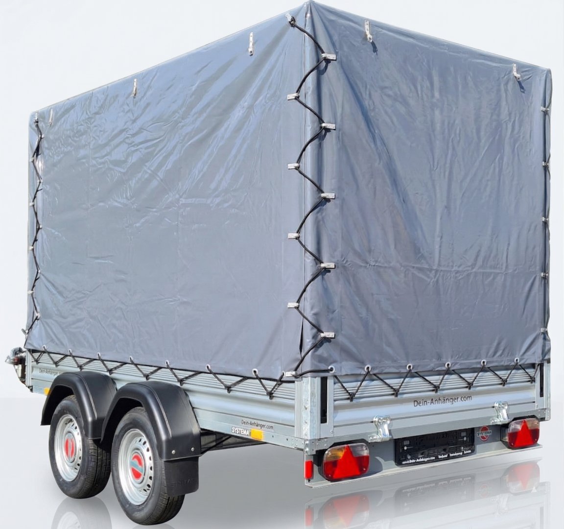 Profi-Planenqualität (700g/m²): Bei einer Aufbauhöhe von 1,80 m ist die Windlast enorm. Deshalb setzen wir auf unsere extra schwere 700g/m² Profi-Plane in LKW-Qualität – extrem reißfest, UV-beständig und absolut wasserdicht.